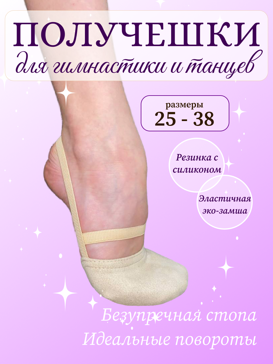 Легкие получешки из эластичной искусственной замши. Резинки с силиконовой полоской. Идеально облегают и подчеркивают красоту стопы. Цвет — светло-бежевый, телесный.